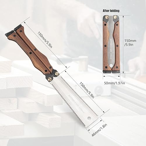 oumuik Japansäge Doppelseitige Faltung Handsäge SK85 Werkzeugstahlmaterial 180° klappbare Ablage Kleine Holzsägen für den Hausgebrauch Für das Sägen im Garten für das Sägen im Freien