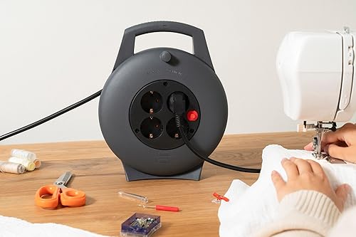 Brennenstuhl Vario Line Kabelbox 4-fach/Mini-Kabeltrommel (Indoor-Kabeltrommel für Haushalt, 10m Kabel, Made in Germany) anthrazit