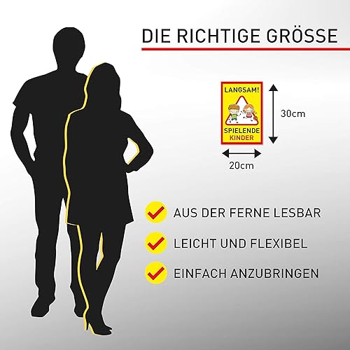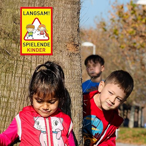 Achtung Kinder Schild (20x30 cm Kunststoff) - Warnschild spielende Kinder - Vorsicht Hier Spielen Kinder - Bitte langsam Fahren - 870211