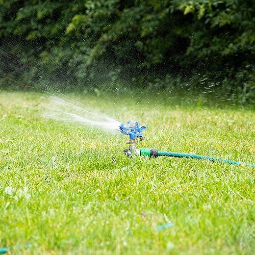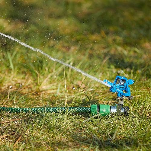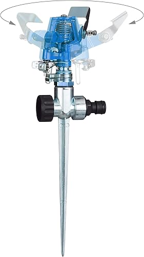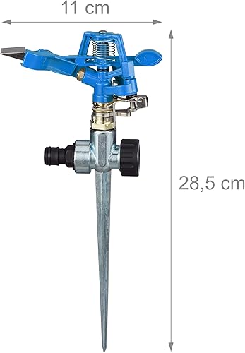 Relaxdays Pulsationssprenger, Gartenbewässerung, 360° Sektorenregner, 24 m Reichweite, Rasensprenger, Metall, blau,28,5 x 11 x 6 cm