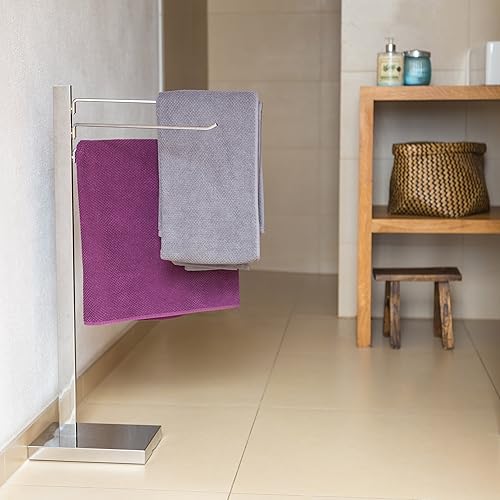 Relaxdays Handtuchständer verchromt, Handtuchhalter freistehend mit 3 Armen frei drehbare Handtuchstangen Badetuchhalter aus verchromtem Stahl mit Bodenplatte aus Kunststoff, silber