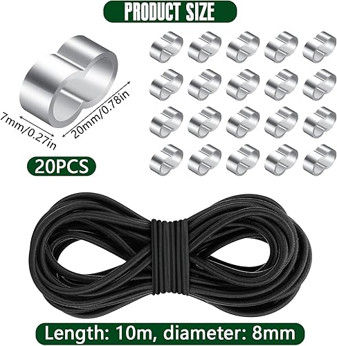 Gummiseil 10m, 8mm Expanderseil mit 20 Würgeklemmen, gummiseil für anhängerplane Gummischnur, gummiseil elastische gummischnur für Anhängerplane, Camping,Segeln Planenseil