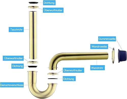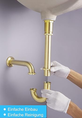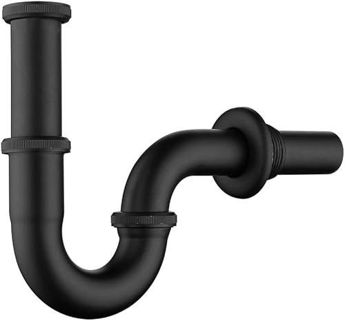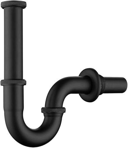 Siphon [Extra Lang 200mm Tauchrohr] für Waschbecken & Waschtisch, Keymark Messing Röhrensiphon Universal 1 1/4 x 32mm, Geruchsverschluss mit Verlängerung, Abflussgarnitur passgenau, Schwarz matt