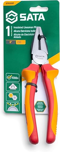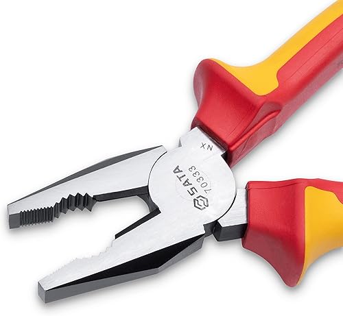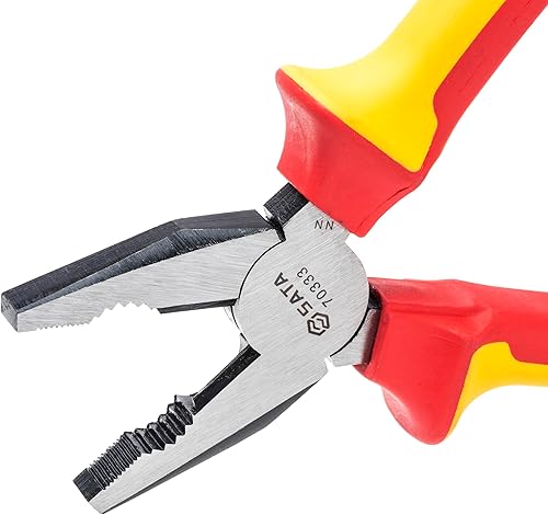 SATA ST70333ST, VDE Isolierte Koombinationszange 210 mm/8 inch mit rutschfestem TPE-Griff und Körper aus Chrom-Nickel-Stahl für hohe Belastbarkeit