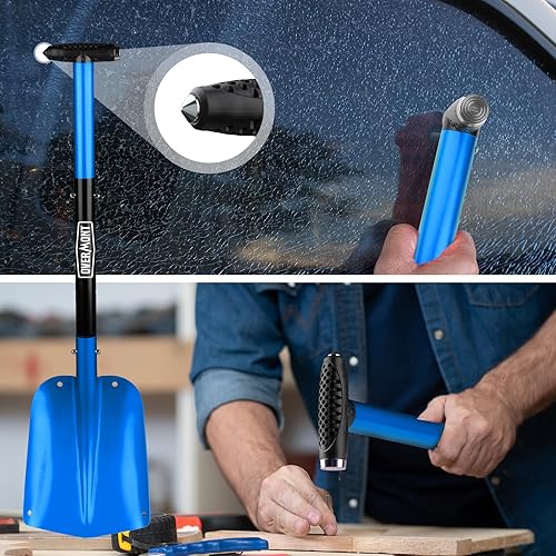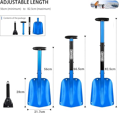 Overmont Lawinenschaufel Aluminium - Schneeschaufel Abziehbar 3 Teilig - Klappschaufel Ausziehbar - Notschaufel mit Eiskratzer und Tragetasche - für Gartenarbeit Winter Auto im Freien