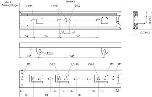 1 Paar Vollauszüge KV4-45-H45-L500-NF mit Auflagelaschen (Länge 500 mm eingeschoben Traglast 45 Kg) Schubladenführungen für Holzschubladen von Sotech