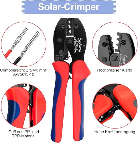 Solar Crimpzange Werkzeug Set für 2.5/4/6mm² PV Kabel,10 Paar Kabelstecker, 10 Paar Männlich/Weiblich Stecker, 1x Crimpzange, 2xSchraubenschlüssel für Solarstecker Kabel Anschluss