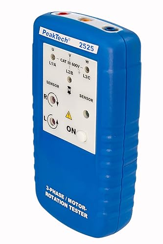 PeakTech 2525 Drehfeldmessgerät 3 Phasen, Drehrichtungsanzeiger/Digital Drehfeld Messgerät für Kraftstrom Motor und Phasenprüfer für Drehstrom, Drehfeldmesser mit LED Anzeige, P 2525