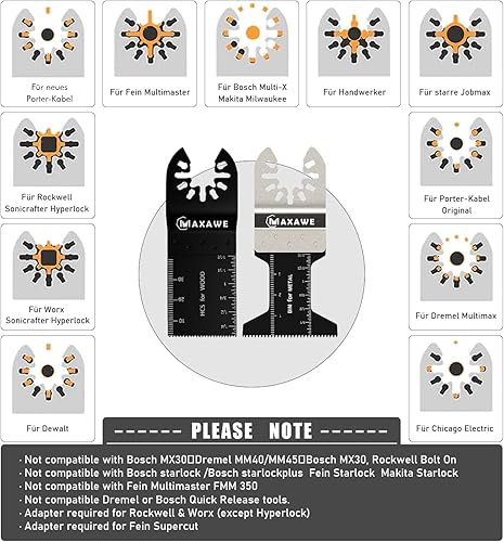 MaxAwe 52Stk Oszillierendes Sägeblätter Kit, Multitool Sägeblatt-Set mit C-Clip Adapter, professionelles Oszillierwerkzeug Zubehör Multifunktionswerkzeug