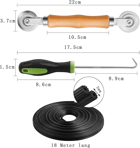 Werkzeug Einzieher Einroller für Keder Fliegengitter, installieren Fliegengitter Ersatzteil, Doppelrad Dichtungseinroller mit 18M x 5mm Kederband Fliegengitter Insektenschutz Ersatzteil