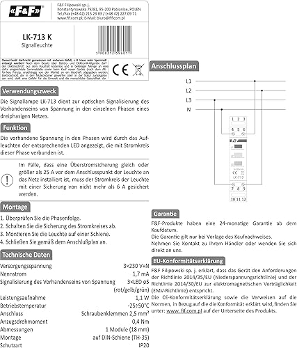 Phasenkontrolle 3x230V+N Phasenlampe Phasenprüfer Kontroll Lampe Leuchtmelder LK-713K grün - gelb - rot 3 Phasen F&F 6011