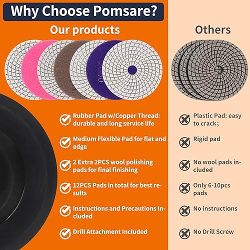 14PCS Diamant nass Polierscheiben mit M14 Gummi-Stützteller Wollfilz,100mm Marmor Polierset Schleifpads für Granit Beton Fliesen Stein Schleifen,50-8000 Schleifscheibe für winkelschleifer, Bohrer