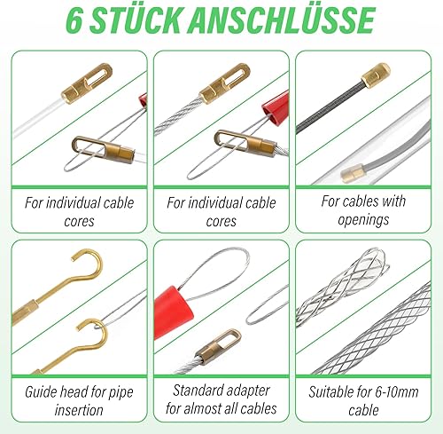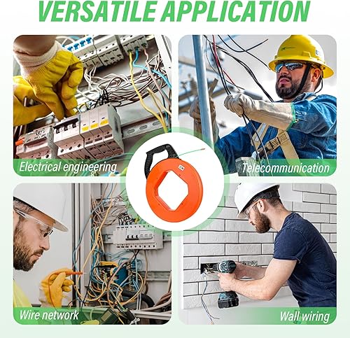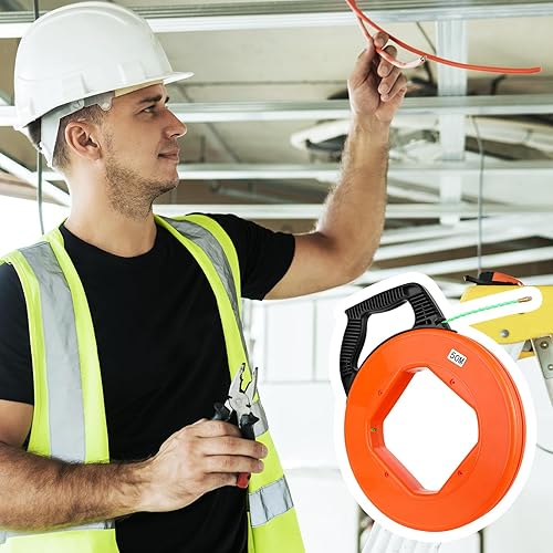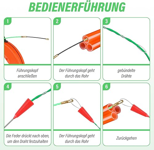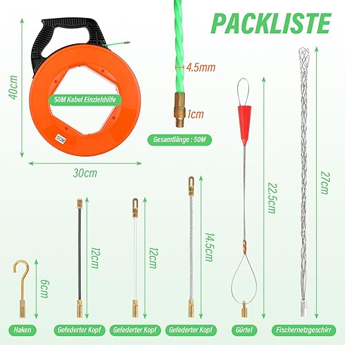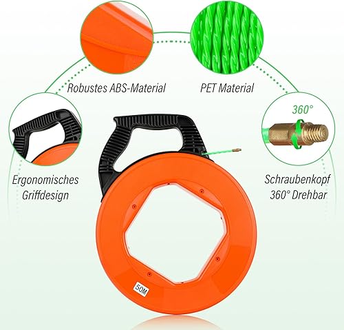 Kabeleinziehhilfe 4,5mm 50m - Einziehspirale 50m Einziehfeder Polyester Zugdraht Fish Tape Einziehhilfe für Kabel Mit 6 Führungsfedern KunststoffgehäUse Ergonomischer Griff