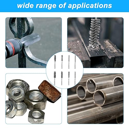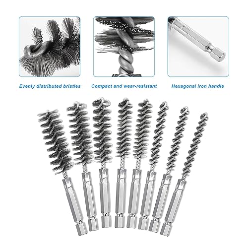 8 Stück Drahtbürste Bohrmaschine, mit Sechskantstange Edelstahl-Lochbürste, Zylinderbürste für Bohrmaschine Polier Schleifen Entrosten Entgraten,Verschiedene Größen Zylinder-Drahtbürste
