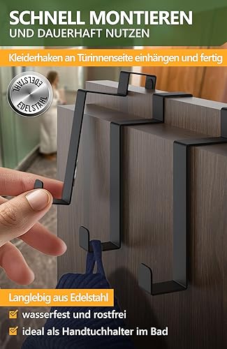 4smile Türhaken Innenseite aus Edelstahl, 10er Set - Einzeln verwendbare Türhaken zum Einhängen, Robuste Kleiderhaken Tür - Türgarderobe Rückseite mit hoher Tragkraft, Handtuchhalter Tür Innen