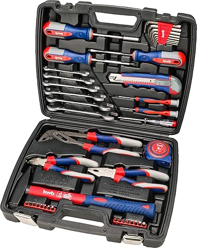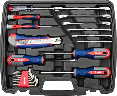kwb Werkzeug-Koffer inkl. Schrauber-Bits, 42-teilig, gefüllt, robust und hochwertig & 1 mm Mini Aluminium-Wasserwaage 20 cm, gesicherte Libelle, m Genauigkeit, präzise geschliffen