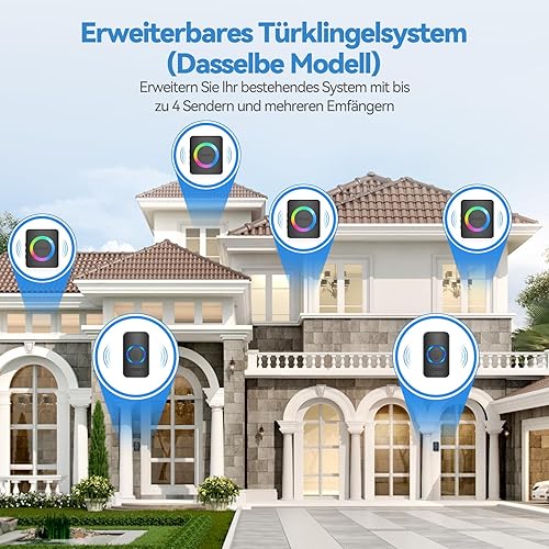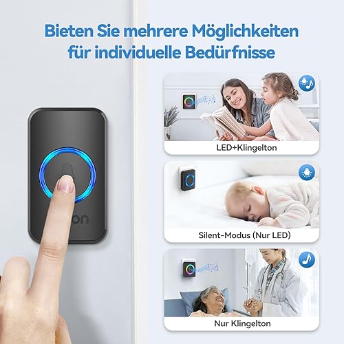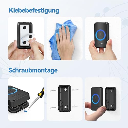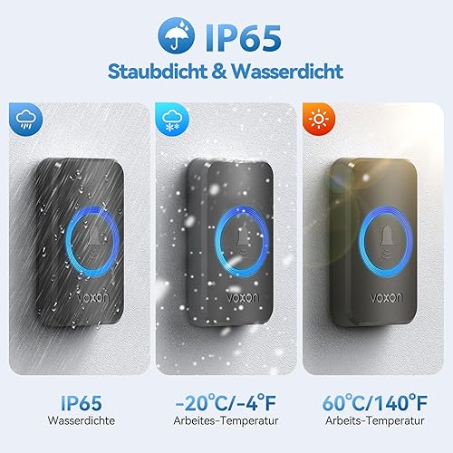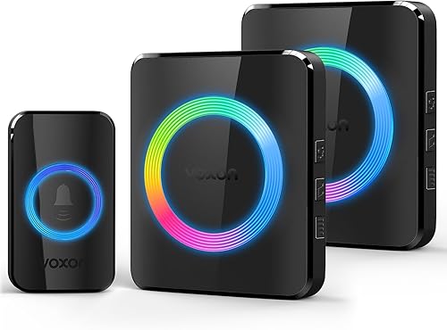 VOXON Funkklingel, Türklingel Funk Set, Kabellose Türklingel 400m Reichweite mit 2 Plug-In-Empfänger und 1 Sender, IP65 Aussen Wasserdicht Haustür Klingel, 60 Melodien doorbell Mit LED-Blitz (Schwarz)