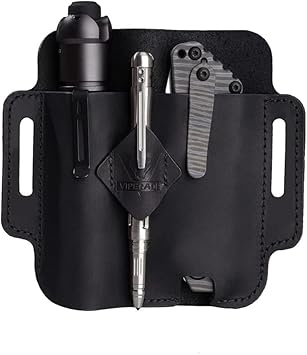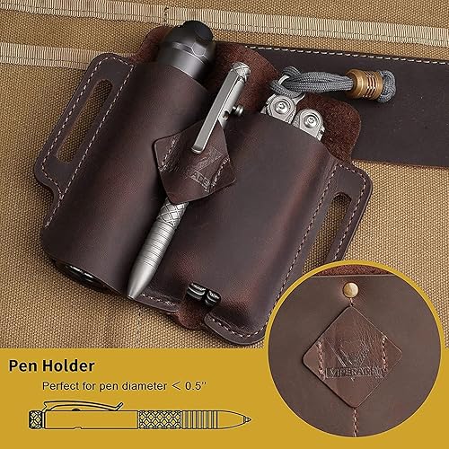 VIPERADE PJ19 Leder EDC lederscheide Tasche Organizer Leder Taktischer Multitool Halter Leder Tasche mit Schlüsselbund Gürtelschlaufe Stifthalter für Taschenlampe Werkzeuge Outdoor Camping - Braun