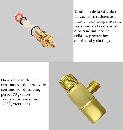Wasserdurchlass, 1/2 - 3/8 Zoll, Eckventil aus Keramik, Winkelventil, ideal für Badezimmer, Hallen, Bars oder Restaurants (Gold)