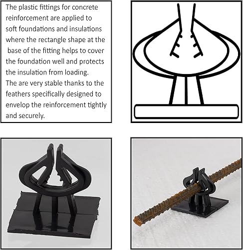 AERZETIX - C65236 - Los von 100 Bewehrung Keilen mit basis für betonstahl von Ø4 bis Ø14-30 mm überdeckung - horizontale befestigung auf extrudiertem expandiertem polystyrol - aus kunststoff