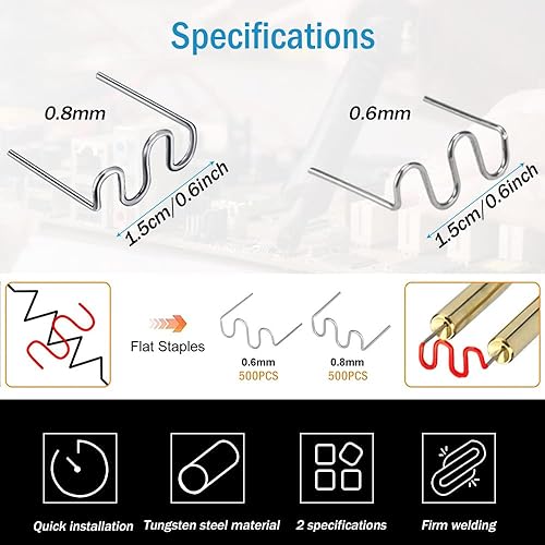 1000 Stück Stahl Hot Staples Schweißstäbe Klammern 0,8mm / 0,6mm Welder Staple Heiße Heftklammern Welder Staple Kunstoff Schweißgerät für Heißklammern Autostoßstange Rissreparatur Set