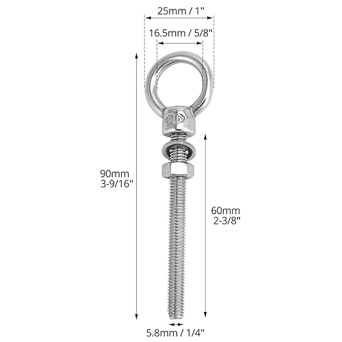 QWORK® 6 Stück Ösenschrauben, M8x80mm Ringschraube aus Edelstahl, Augenschraube, für Befestigung und Aufhängung