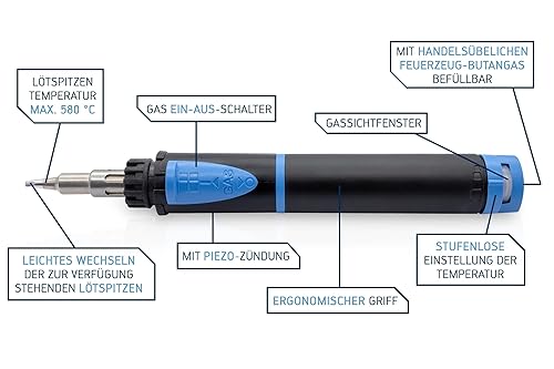 ERSA Independent 0G070KN Gaslötkolben 75W Spitzentemperatur bis 580 °C inkl. 2,4 mm Lötspitze meißelförmig - mobile Lötkolben Power - wo immer Sie wollen, ohne Strom