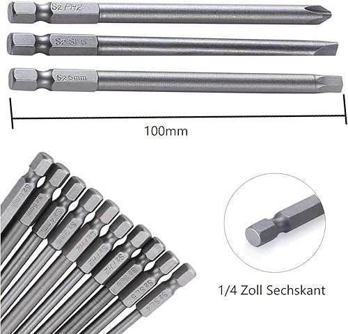 Linhon 21 Stück Schraubendreher Bit Satz Lang, Torx Bit Set Magnetisch T6-T40, Hex, PH2, Schlitz Bitsatz 1/4 Zoll Sechskant, 100mm Extra Lang, S2 Stahl, PP Box Paket