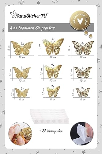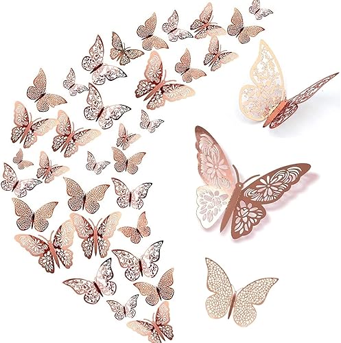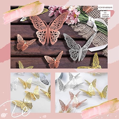 WandSticker4U®- 36er DEKO SCHMETTERLINGE roségold Metallic I 3D Papier Schmetterling für Wohnzimmer Kinder-zimmer Mädchen Küche Fenster Möbel Hochzeit Party Wand-Tisch-Deko Geschenke