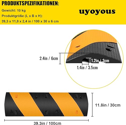 uyoyous Kabelbrücke 2 Kanal 100 x 30 x 6 cm Fahrbahnschwelle Schlauchbrücke überfahrbar Überfahrschutz für Kabel Außen