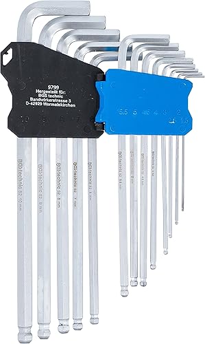 BGS 9801 | Winkelschlüssel-Satz | 13-tlg. | extra lang | Zollgrößen | Innensechskant / Innensechskant mit Kugelkopf 0,05' - 3/8'