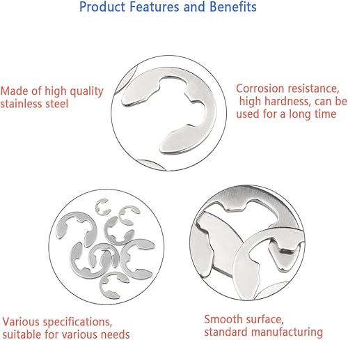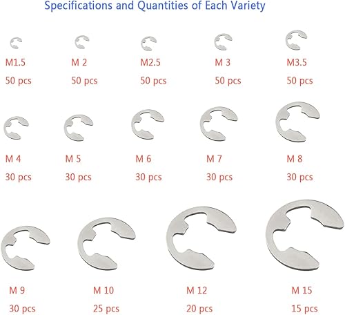Edelstahl Sicherungsringe Sprengring Set, 510 Stück Seegering E-Clip Sortiment,Klemmring (M1,5/M2/M2,5/M3/M3,5/M4/M5/M6/M7/M8/M9/M10/M12/M15) sicherungsscheiben für wellen