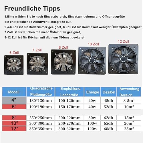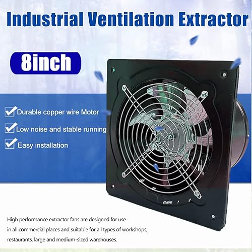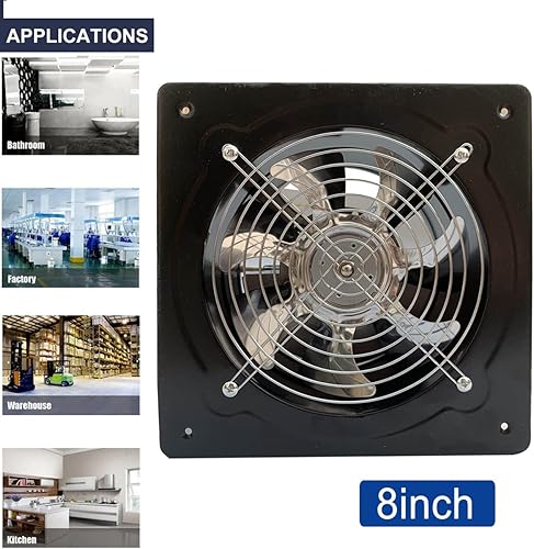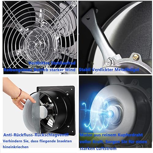 ECUTEE 80W 8' Axiallüfter 1250 m³/h Abluftventilator 200mm Axialventilator Küchenabluftventilator Industrieller Metall Lüfter Wand-/Deckenabluftventilator im Badezimmer (Plattengröße: 250 × 250 mm)