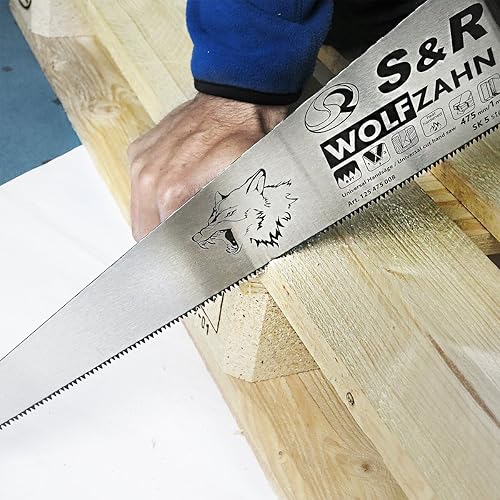 S&R Holzsäge UNIVERSAL 475 mm (8 Zähne/Zoll) WOLFZAHN Aggressive 3D-Präzisionszahnung, Bi-Material Handsäge Fuchsschwanz Säge