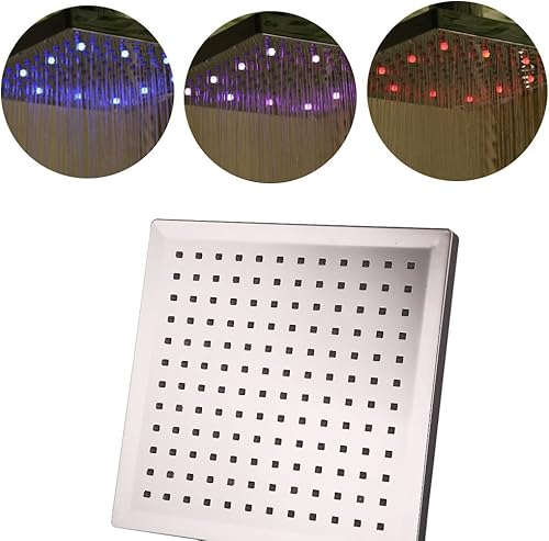 Duschkopf Regendusche 8 Zoll, Regenduschkopf 20x20cm Eckig, Temperatur Control 3 Farbwechsel Wasser Flow Powered Top Sprühduschkopf, ABS Chrome Finish 12 LEDs, Langlebig Und KorrosionsbestäNdig
