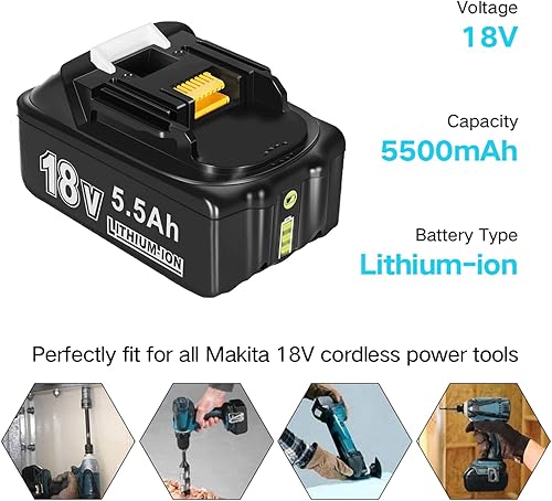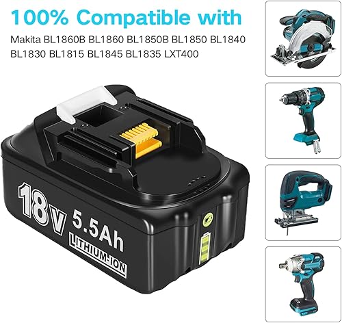 2X 18V 5,5Ah/5500mAh Ersatzakku für Makita Akku BL1850 BL1860B BL1860 BL1840B BL1840 BL1830 BL1835 BL1845 194204-5 LXT-400