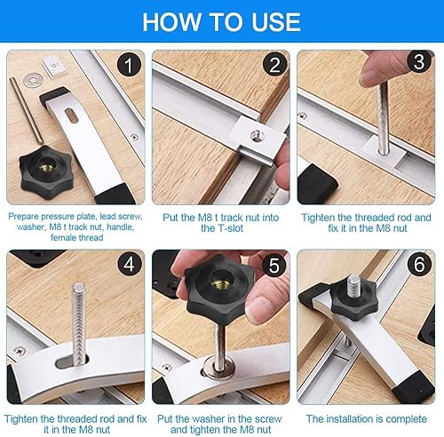 KLYNGTSK 18 Stück T-Schiene Gleitmuttern M8 Nutensteine T-Nut Muttern Kit mit T-Schraube und Klemmknopf M8 Kunststoffgriff für Holzbearbeitung Werkzeug
