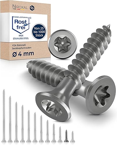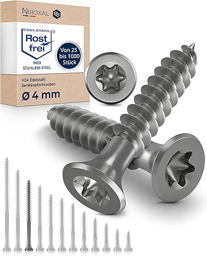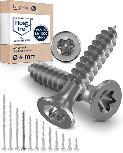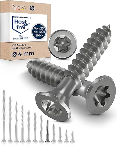 Holzschrauben Torx Schrauben 4x25 Edelstahl V2A rostfrei Spanplattenschrauben für Holz Teilgewinde 4mm stark 25mm lang 100 Stück Edelstahlschrauben Holz A2