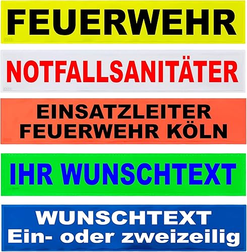 Reflexschild Rückenschild glänzend reflektierend Mikroprismen mit Wunschtext individuell wie RETTUNGSDIENST FEUERWEHR NOTARZT in verschiedenen Farben und Größen (38x8cm, leuchtgelb)