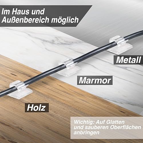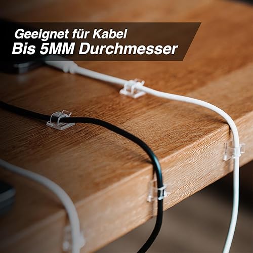 Kabelhalter selbstklebend, starker 3M Kleber, 50 Stück, Indoor & Outdoor - Kabelclips für Kabelmanagement - Kabelklemmen & Kabelorganisator an allen Möbeln - Kabelbefestigung Lichterkette(transparent)