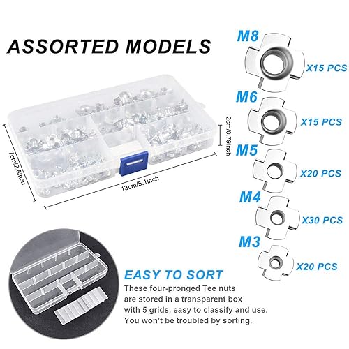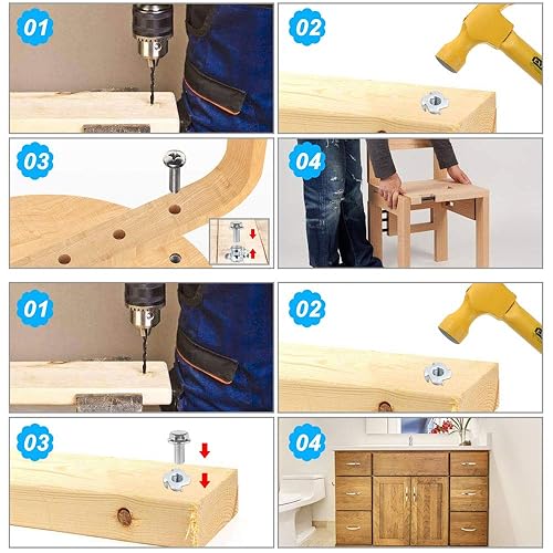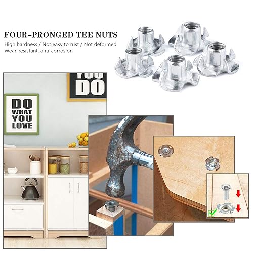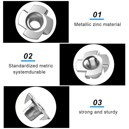 KBNIAN 100 Stück Einschlagmuttern mit 4 Einschlagspitzen Vier-Prong Einschlagmuttern M3 M4 M5 M6 M8 Gewindemutter Eisenverzinkte Einschlagmuttern zur Befestigung für Möbel, Holzbearbeitung