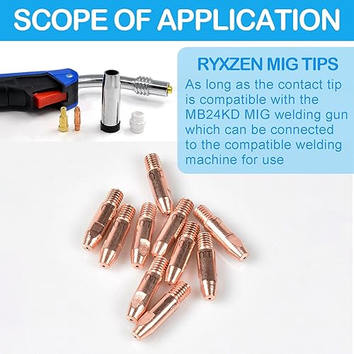 RYXZEN 10 Stück 0.6MM Kupfer Kontaktspitze Schweißdüsen Stromdüse M6 0.0236 Zoll Schweissgerät Schweißzubehör Verschleißteile Set für 24KD MB24 MIG MAG Schweißbrenner