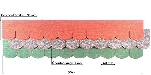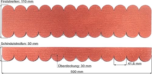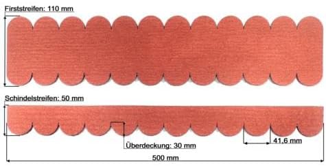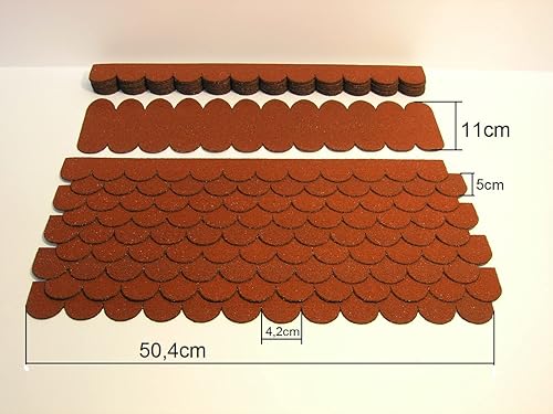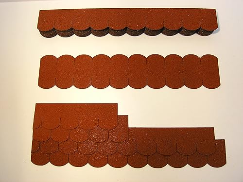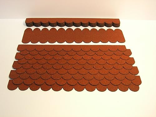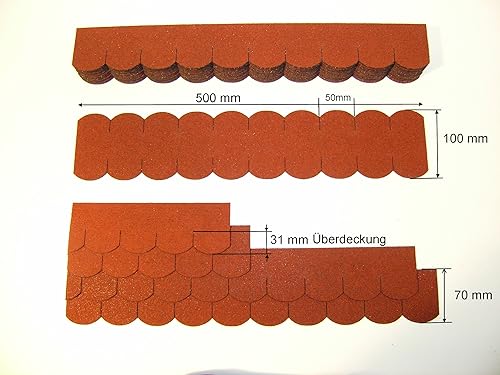 Mini Dachschindeln Rund (41 mm) - 3 Sets - Rot ' 23.435 ', DachschindelDachschindeln, Minidachschindeln, Schindelstreifen, Biberschwanz, Dachdeckung, Schindeln Schindel Dach Bitumen Pappe 1,05 m²