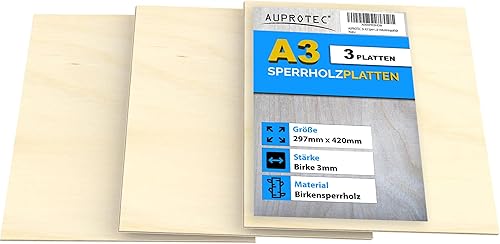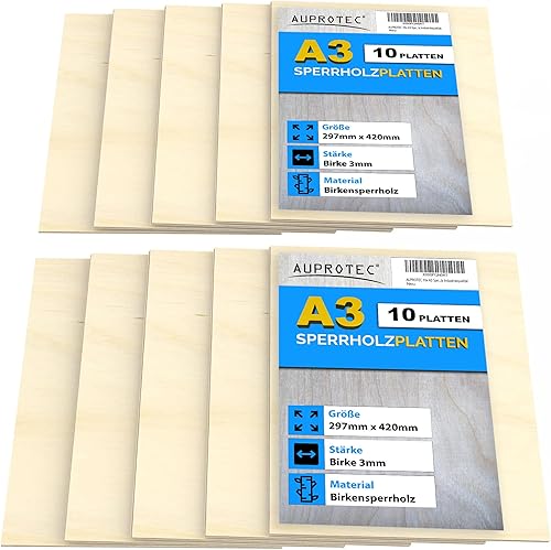 AUPROTEC 10x A3 Sperrholz-Platten Birke 3mm Multiplexplatten (297 mm x 420 mm) Bastel- und Laubsäge-Holzplatten Birke Massiv Multiplex Holz Industriequalität