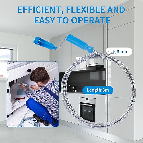 WUFANC Rohrreinigungsspirale Ø 6mm x 3m, Abflussreiniger Spirale, Spirale Abfluss Rohrreinigung für Hartnäckige Verstopfungen, Rohrreiniger Spirale für Toilette, Waschbecken und Badewannenabflüsse