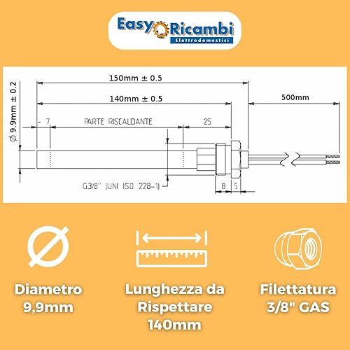 ZÜNDKERZEN FÜR PELLETÖFEN; Gewinde 3/8 280 W 150 MM 140 MM; Durchmesser 9,9 mm; Teller: CS Thermos - Adler