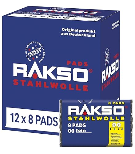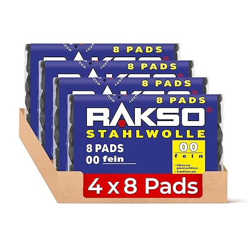 RAKSO Stahlwolle fein 00-8 Pads, glättet Hölzer, Reinigung Kunststoffjalousien, Gartenmöbel, Aluminium aufpolieren