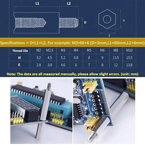 SYDARSYN Abstandshalter Edelstahl Hex Distanzhülsen PCB Board Männlich Weiblich Gewinde Abstandsbolzen M5*50+8mm (3 Stück)