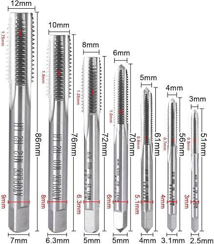 ATOPLEE 7 Stück HSS 6542 Metrischer Linksgewinde Gewindebohrer Satz, M3 M4 M5 M6 M8 M10 M12