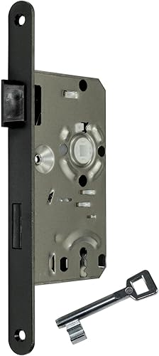 SN-TEC Standard Zimmertürschloss/Türschloss mit Buntbart, mit schwarzer Stulp, 55/72/8, Stulp: 20 x 235mm abgerundet schwarz DIN Rechts (BB BUNTBART DIN Rechts)